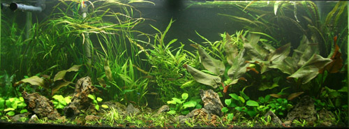It is still possible to use pressurized CO2 and high lighting with this method of fertilization. I have setup four tanks using this method and all of them have been high-tech setups using CO2 and high lighting. I rarely ever have to dose any supplements save for the occasional dose of potassium. Use caution when dosing and dose very little amounts at a time. Below are a couple pictures of tanks that I setup using the mineralized soil method.