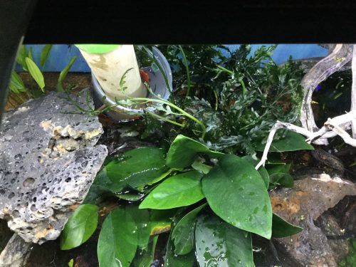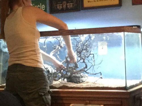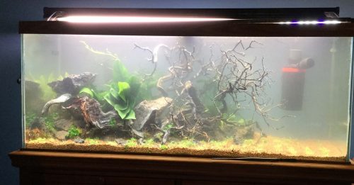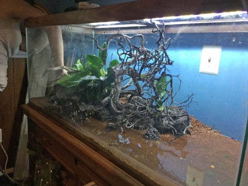 Next they added the rocks and wood that will be part of the aquascape.