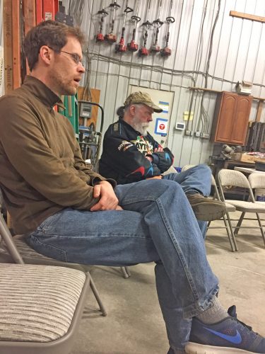 Several Damascus workers talked about the proper way to set up and keep a pond. They discussed such items as the proper depth for a backyard pond, what sort of filers are best to have, the rocks that are needed so that the beneficial bacteria will grow and survive. There was some discussion of the proper pumps to use.